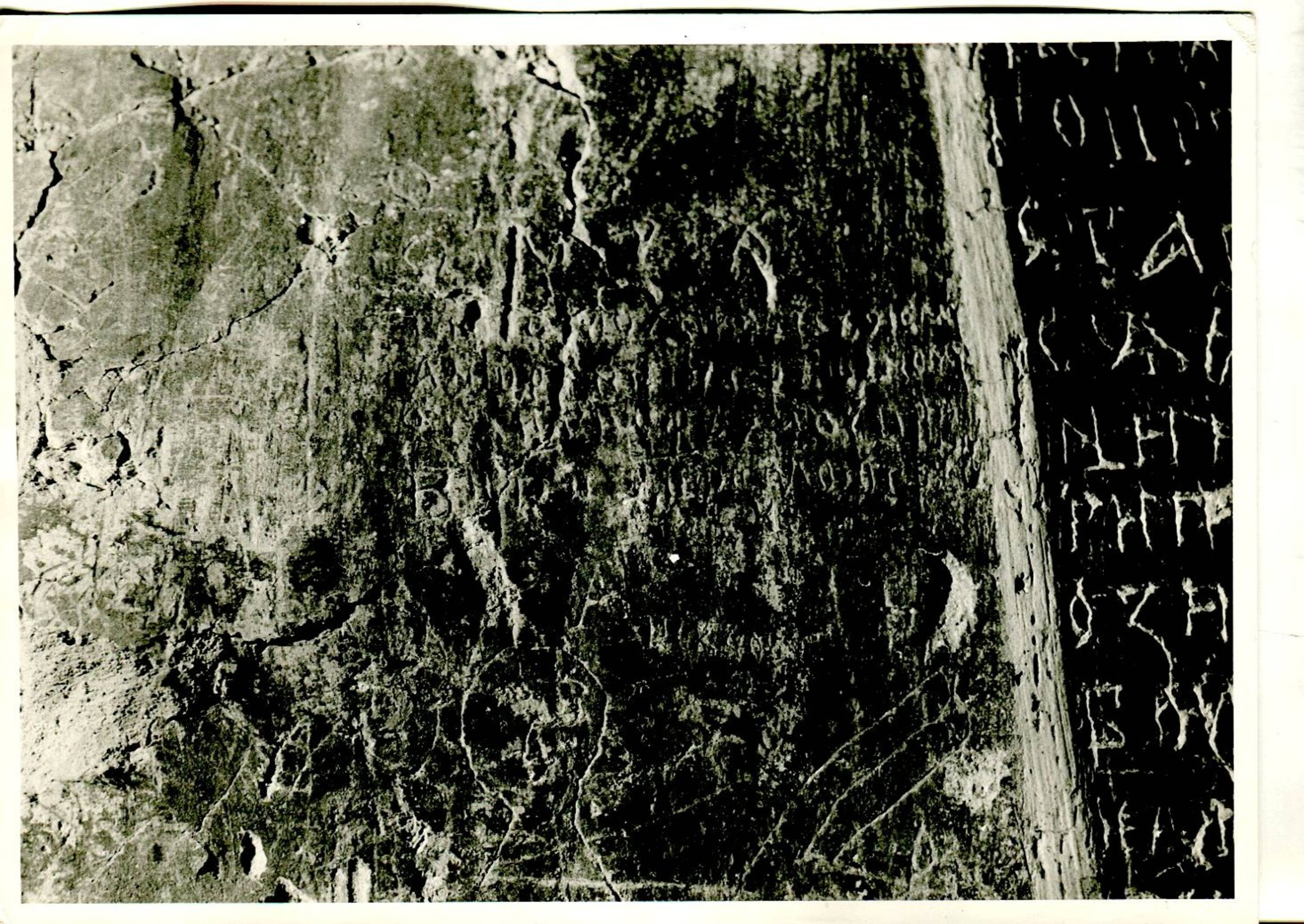 | Датировка по палеографии и языку | Б III "Петля с двумя изломами" 1320>, Ѣ III "Петля с двумя изломами" 1320>, Р V "Петля с двумя изломами" 1280>, У 2 "Маленькая головка" <(1200)<1220 (!), Д 3 "Длинные ножки в типе I" <1200+1280>. Язык: редуцированные двояко (Андронику, грешьному) <1300. Итого 1300–1320. Почерк мелкий, узкий; а «плосковерхая», петля с изломом [Зализняк 2000: 153], ѣ с коромыслом на уровне верхней границы строки, х с уменьшенным верхом и закругленными размашистыми хвостами [Там же: 195]. В слове своему ѥ после гласного. Надпись датируется в пределах второй половины XIV в. (Рождественская 2016б) |