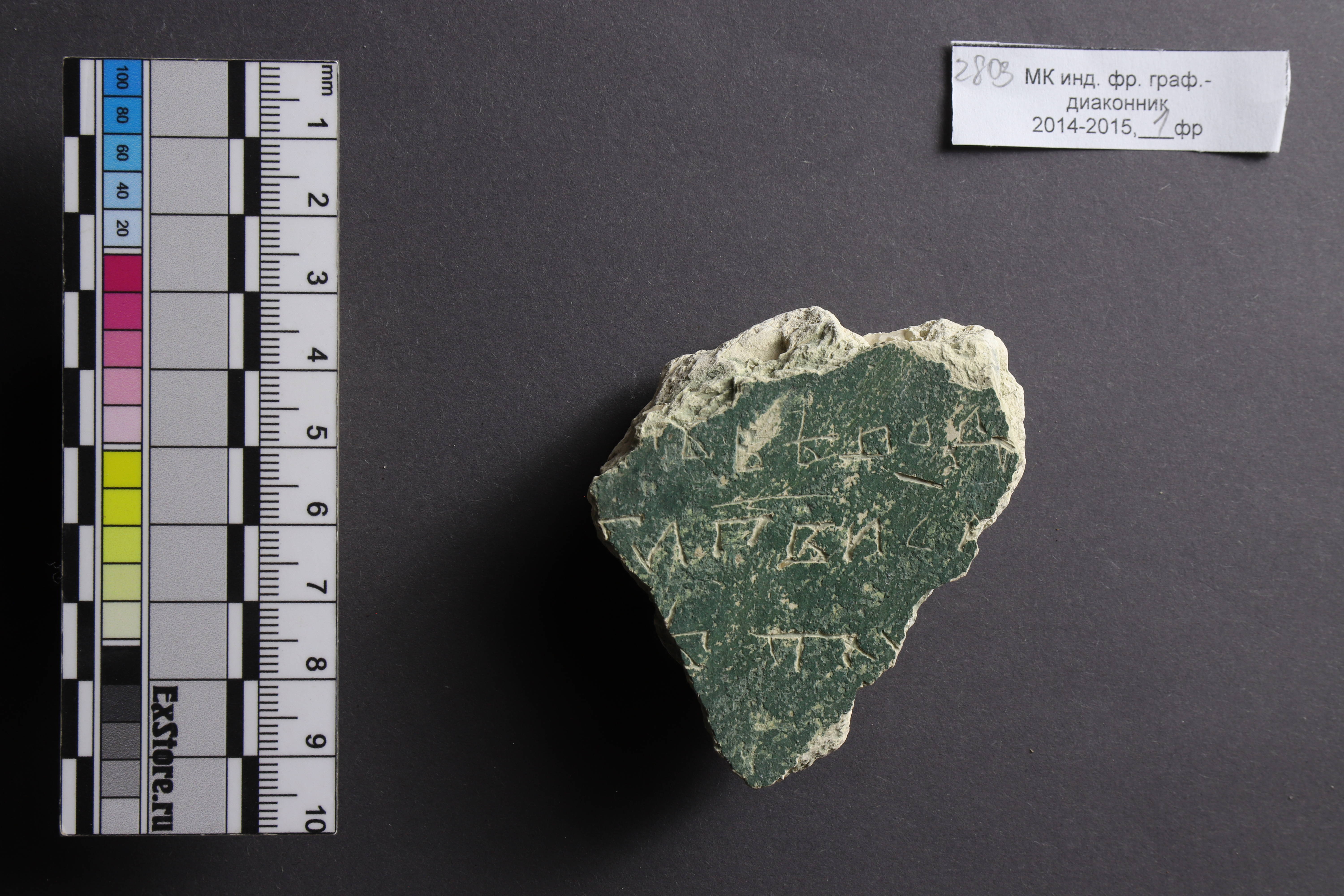 | Комментарий | «Первые две строки содержали инципиты возгласов священника после великой ектении (“Яко Тебе подобает всякая слава, честь и поклонение…”) и после малой ектеньи (“Яко благословися имя Твое и прославися царство Твое…”). Последовательность ѣт[х] или ѣт[у], читаемая в 3‑й строке, в стандартных возгласах не обнаруживается; возможно, здесь читалось начало какого‑то песнопения». (Гиппиус, Щеголькова 2024, 493) |