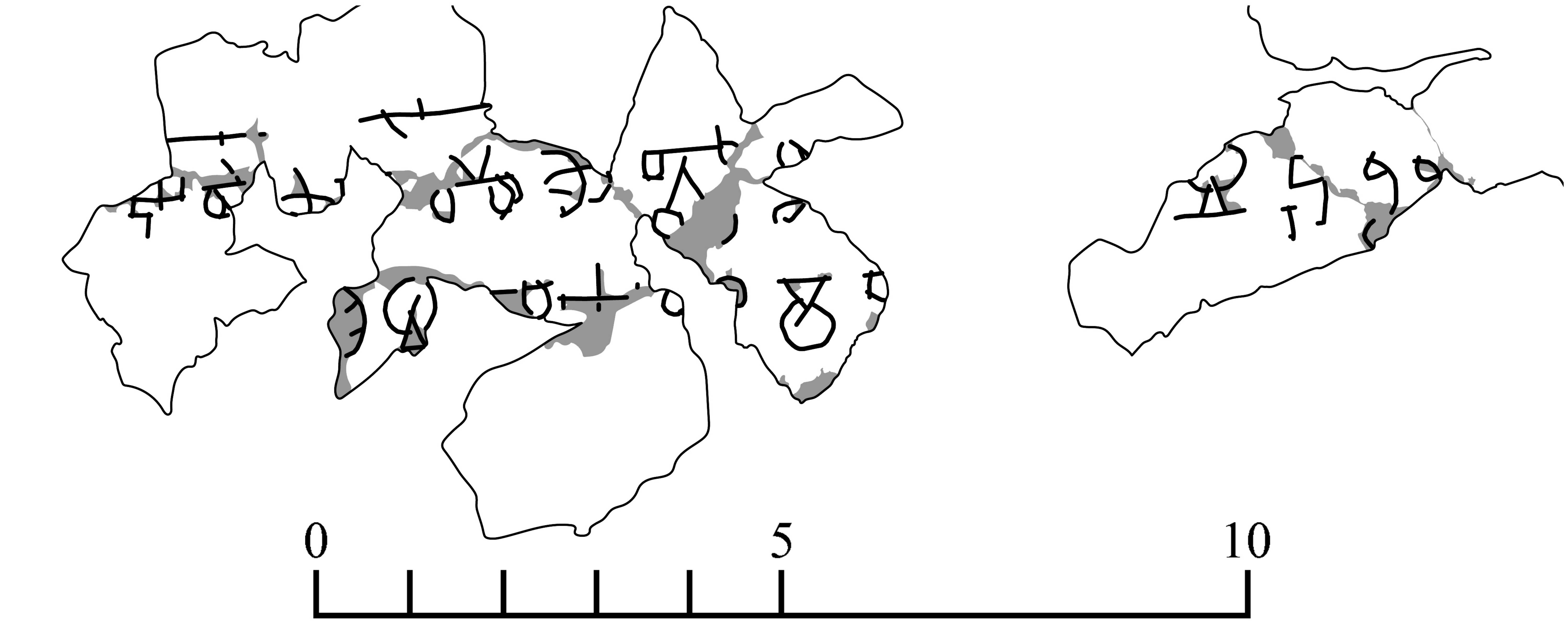 | Комментарий к прочтению | Перед нами начальные слова 21 псалма, сказанные Иисусом с креста (Мт. 27:46; Мк. 15:34). В Софии Новгородской существовала кириллическая надпись-граффито или или лим за[ва]хѳ[ан]ии – та же фраза по-арамейски (Софийское граффито сохранилось в виде гипсового слепка, сделанного Шляпкиным в 1895 г. и хранящегося в архиве Санкт-Петербургского института истории РАН, пока не опубликовано). В наречии (въ)скоу(ю) представлен восточнославянский рефлекс /ǫ/; ср. ст.-сл. въскѫѭ. По этой причине и последний гласный восстановлен в виде ю. (Гиппиус, Михеев 2022а) |