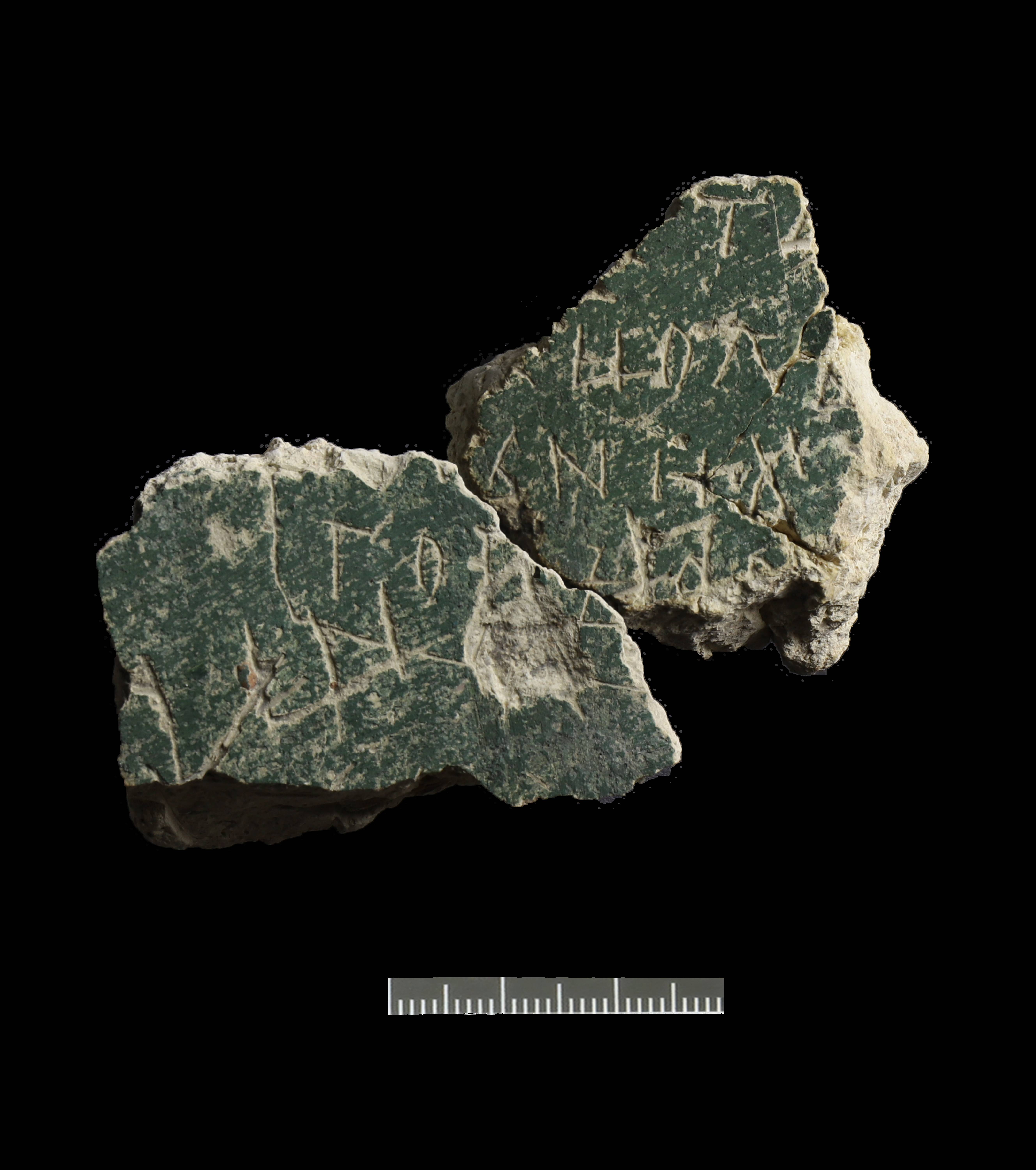 | Расположение на носителе | Фрагменты 2552, 2609 были найдены в северной апсиде. «Блок из двух кусков штукатурки зеленого цвета с мелкими выбоинками и повреждениями на красочном слое. Мазки кисти ярко выраженные, диагональные (слева направо, снизу вверх)». (Гиппиус, Щеголькова 2024) |