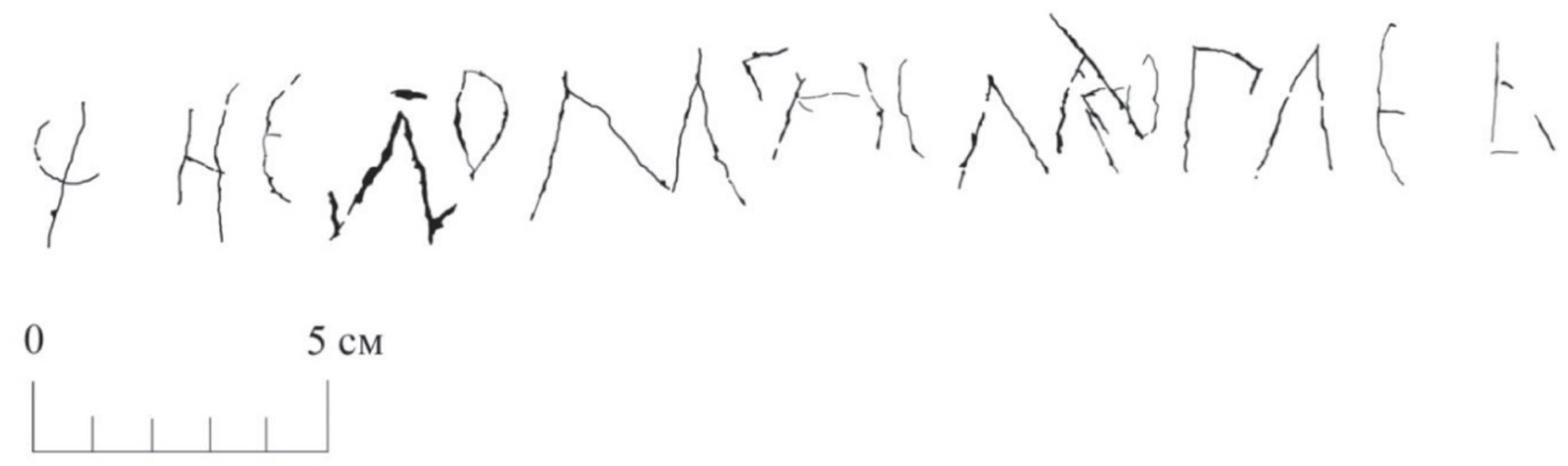 | Датировка по палеографии и языку | б – II; г – I; д – IIIа, 2; е – II; л – Iа; м – Iа; н – Iв; о – I; с – I; ы – Iб; ѧ – Iа. Особенности начертания большинства букв надписи не имеют ярко выраженных датирующих признаков. Исключение составляют модели д («на щечках») и ы («средняя перемычка»): первая встречается сравнительно часто в берестяных грамотах второй половины XII – XIII в., а вторая – очень часто во второй половине XII – середине XIII в. Таким образом, наиболее вероятным временем выполнения граффито можно считать вторую половину XII – середину XIII в. Написание остальных букв не противоречит этой хронологии. (Артамонов, Гиппиус 2023) |