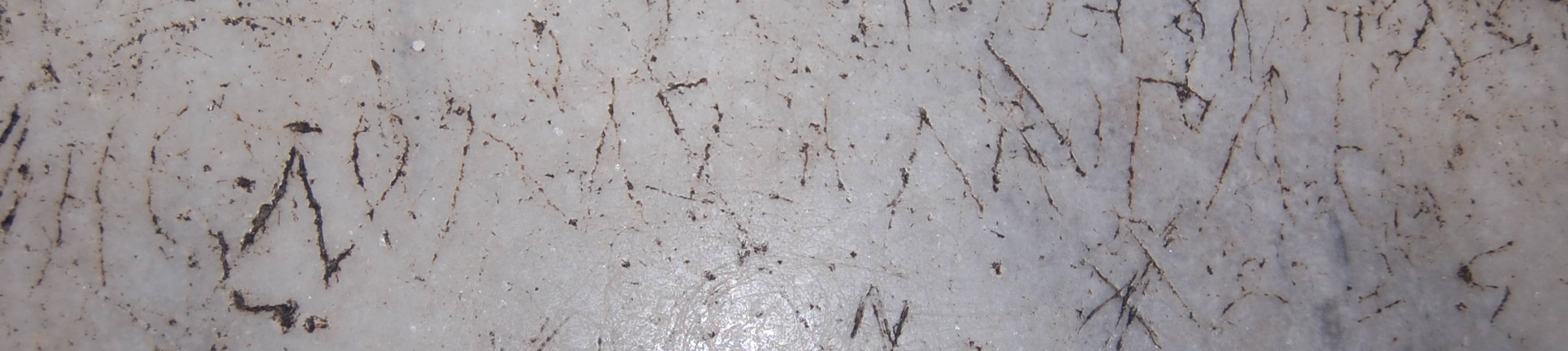| Расположение на носителе | Западная часть южной галереи. Надпись выполнена на перилах северо-западной лоджии. Расстояние от стены слева – 53 см, от стены справа – 142 см. Граффито – однострочное, по всей видимости, неоконченное (в Глеб отсутствует конечный ъ). Общая длина сохранившейся части составляет 26 см. Высота букв колеблется от 1,8 см (с) до 3,5 см (м), интервалы между ними разнятся. Надпись выполнена с незначительным наклоном вверх. Справа от ѧ в Недомыслѧ приписано о; по-видимому, ѧ правилось на о, но не было зачеркнуто. Граффито писалось с разной степенью нажима (ср. д), что наряду с наличием соскоков и разным уровнем положения букв в строке говорит о небрежности его выполнения. Прочтение затрудняют многочисленные штрихи соседних начерков, а также истертость поверхности перил. (Артамонов, Гиппиус 2023) |