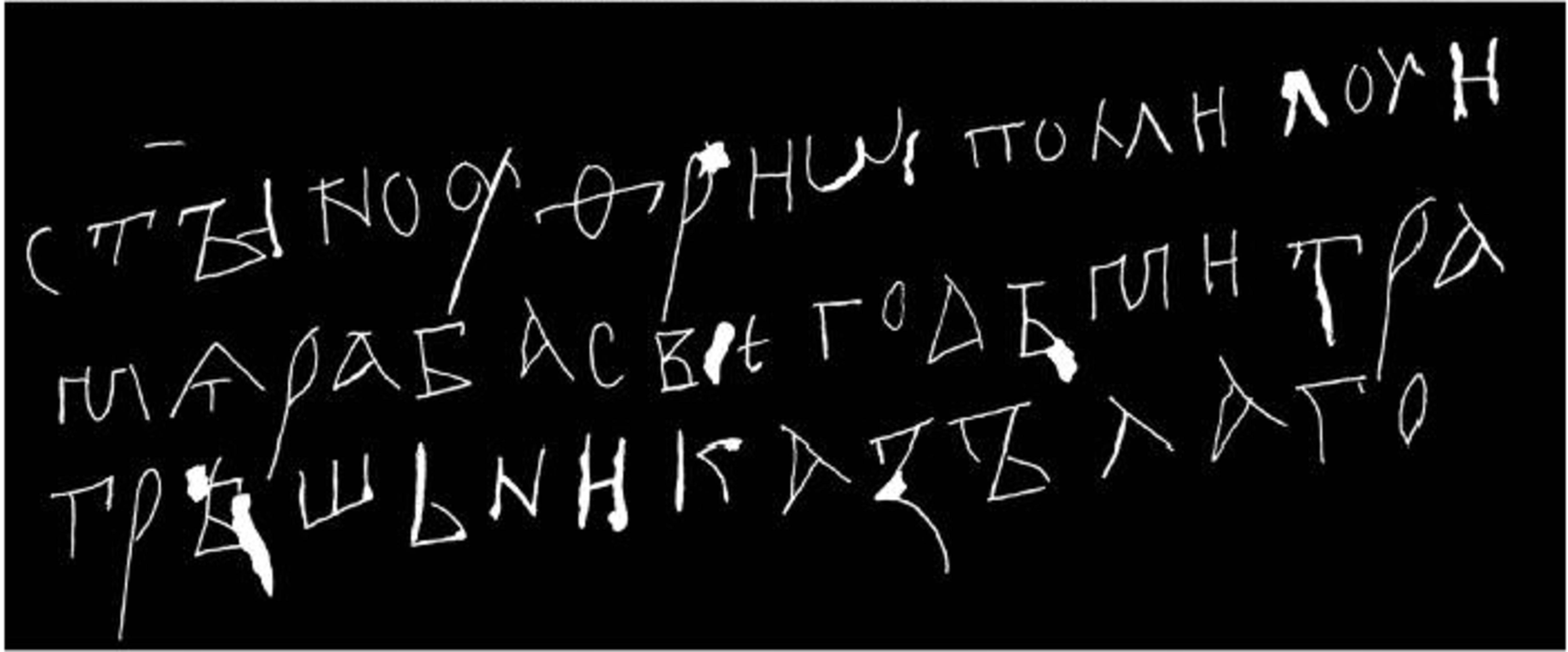 | Датировка по палеографии и языку | р Iб «Округлая петля (прямая мачта)» (<1320) <1360, з 1 «Выступ вверху справа» (<1340), ь 3 ½ «Покрытие» <1300, п 1 «Выступ вверху» (<1200) <1300, в 4 «Выступ вверху» (<1200) <1280, ш II «Платформа приподнята» (<1240) (<1400), б 3 «Выступ вверху» (<1200), г 1 «Выступ вверху» (<1200), ъ 3 «Выступ вправо вверху» (<1200), б, в, г, п обычно с выступом (<1120) <1180; ꙑ Iв «Перемычка (низкая)» 1160> (1320>), д II «Δ- и А-образные» 1100> <1200, к 5 «Уменьшенный верх» 1100> (1280>); (!) в I «Округлая нижняя петля» <1140; результат: [1160–1180] |