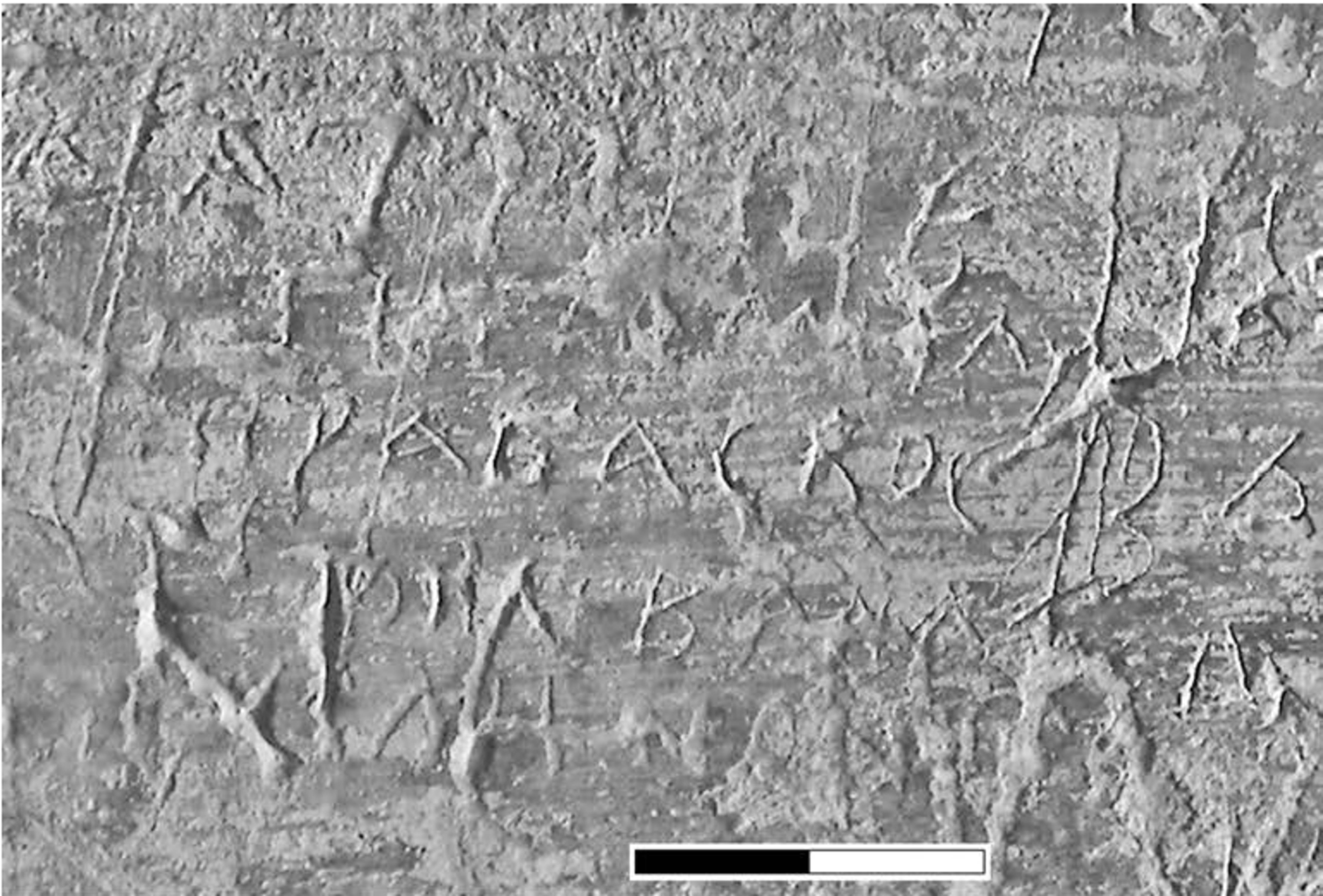 | Расположение на носителе | придел арх. Михаила, северо-восточный угол апсиды, на южной грани восточной лопатки первого от алтаря крещатого столба; на фреске с изображением Честного Креста (Корниенко 2015б) |